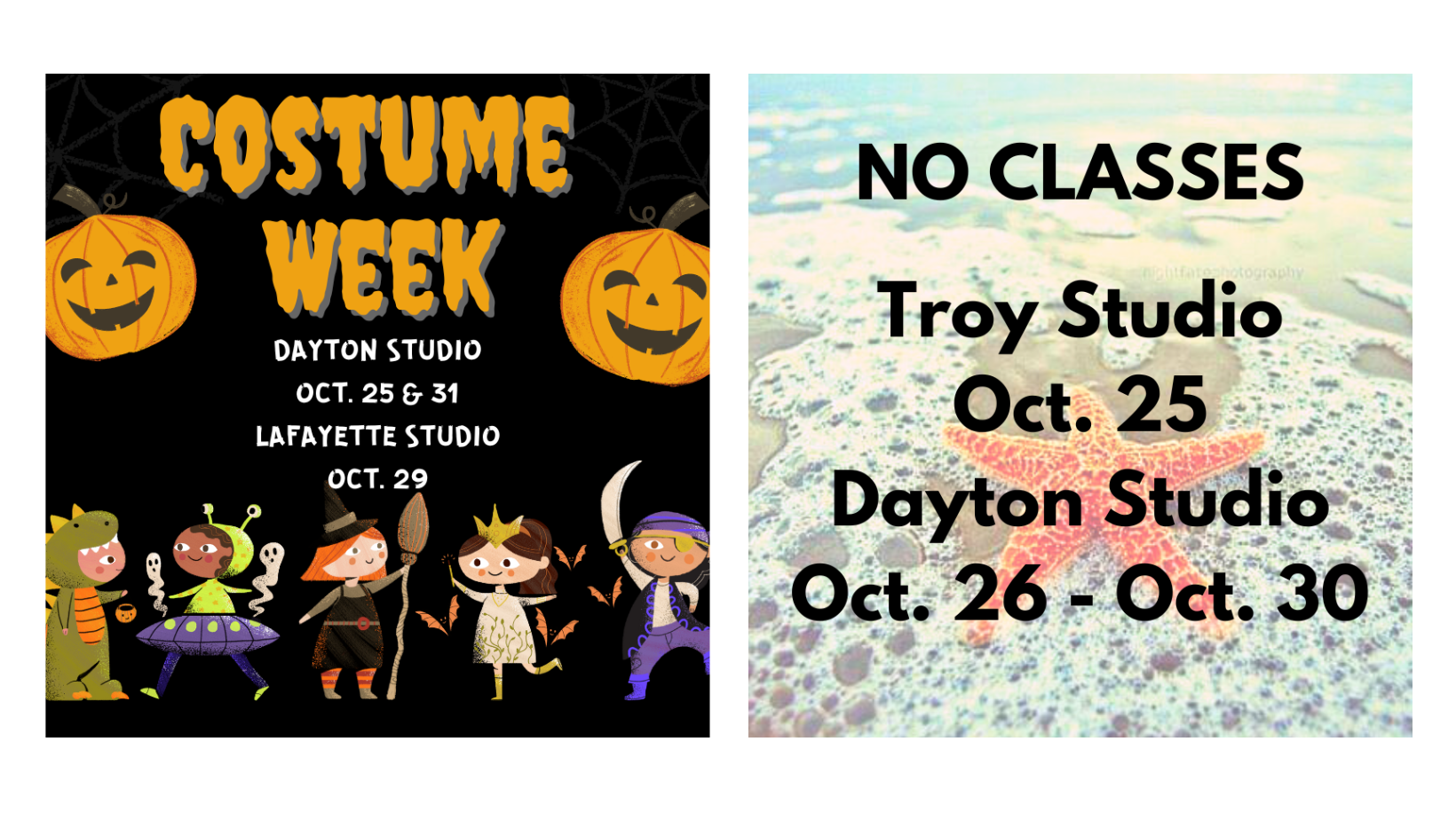 Oct. 25 There will be no classes in Troy (Dancers may come to Dayton's Tuesday class to make up the time)