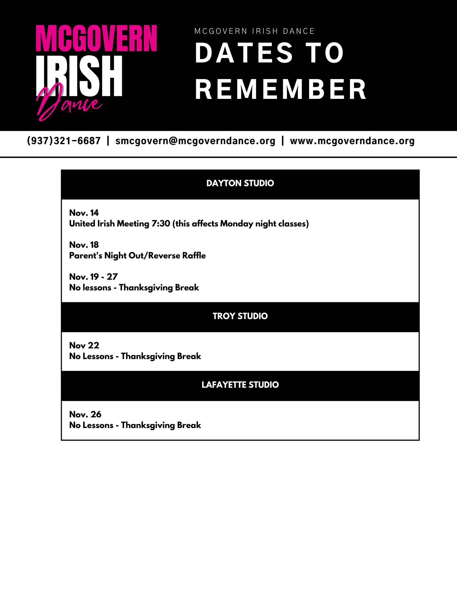 5:30 - 6:00 Jump'nJig Ages 2 - 5 (Enroll www.preschoolirishdance.com)