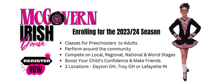 Welcome to McGovern Irish Dance 2023/24 Season! Registration is now open.