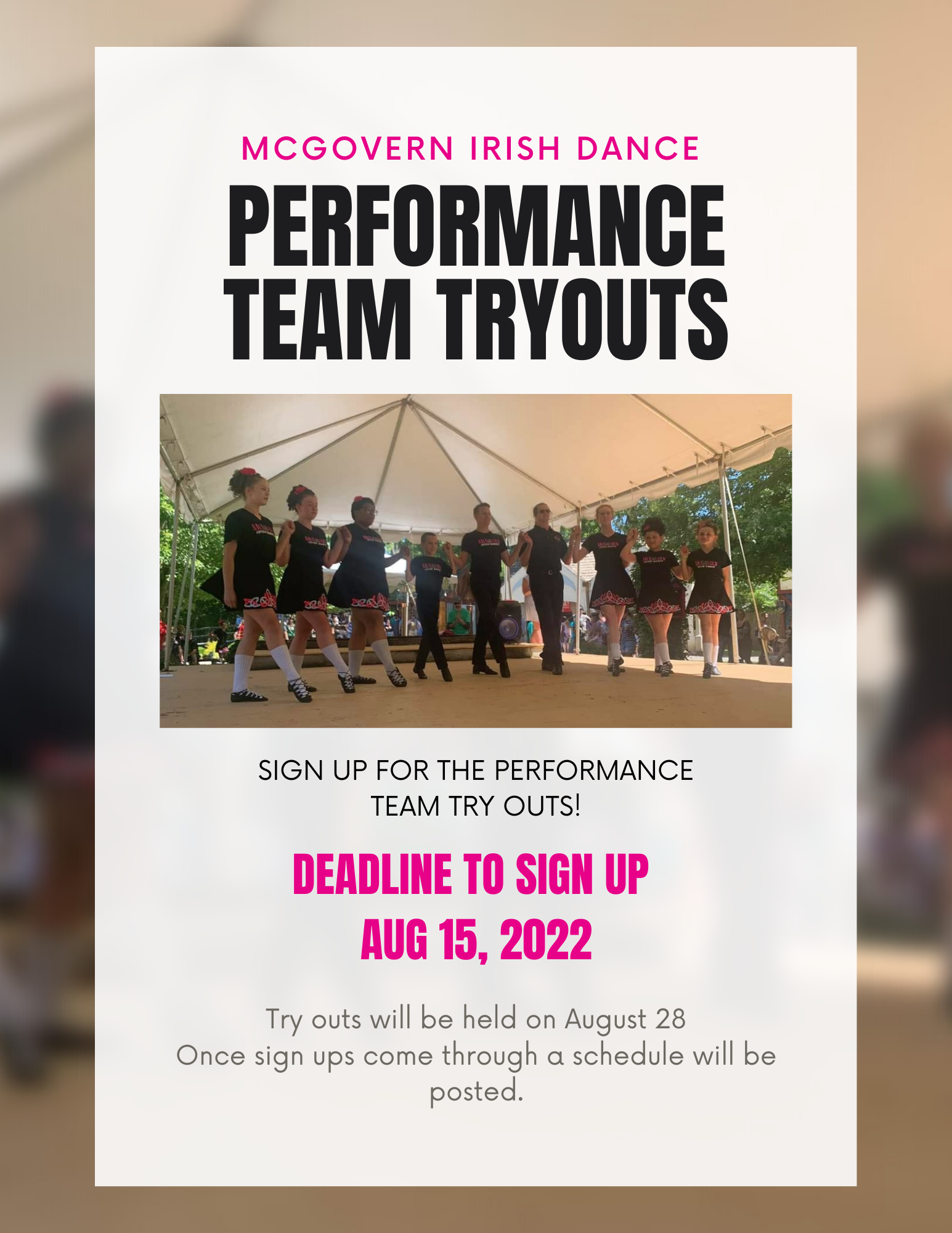 McGovern Irish Dance Performance Team - Try Out for the team!