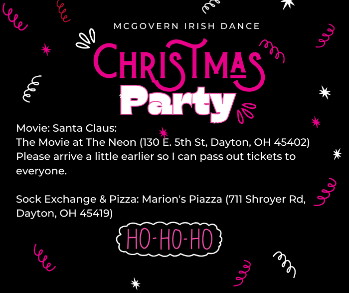 Just a friendly reminder that our McGovern Irish Dance Christmas Party is tomorrow, and we can’t wait to see you there! Here’s the plan: