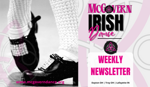 MCGOVERN IRISH DANCE WEEKLY NEWSLETTER WEEK OF July 31 - August 6, 2023 SAVE THE DATE Aug. 12 @ 1:30 - 3:30 Dayton OH Studio Open House Sept. 5 @ 6:30 - 7:30 Troy OH Studio Open House Sept. 9 @ 11:15 - 12:00 Lafayette IN Studio Open House Sept. 16 - Global Fest Performance - Lafayette IN Sept. 30 - Indian Lake Moose Oktoberfest Aug. 12 1:30 - 3:30 Dayton Studio Open House October 7 - 8 - CRN West Region Regional Championships - Kalahari Resorts STUDIO SCHEDULE UPDATES...