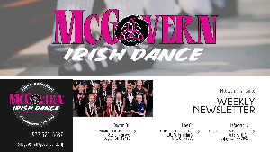 McGovern Irish Dance Weekly News Sept. 26 - Oct. 2 Dayton Studio Class Schedule Monday 4;30 - 5:00 Jump'n Jig Ages 2 - 4 (www.preschoolirishdance.com) 5:15 - 5:45 Jump'n Jig Ages 2 - 4 6:00 - 7:30 Ullmhuchan/Mean Grad Youth & Adult 7:30 - 8:30 Ard/Craobh Tuesday 4:15 - 4:45 Jump'n Jig Ages 4- 6 4:45 - 5:30 New Beginners 5:30 - 6:15 New Bun Grad Ages 6 and up 6:15 - 7:00 Beginner Hard Shoe Youth & Adult 7:00 -7:45 Bun Grad Wednesday 5:45 - 6:45 Ullhmhuchan/Mean Grad 6:45...