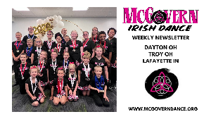 McGovern Irish Dance Weekly News Sept 5 - Sept 11 FYI - Pricing is per day, not per session. For example, if you do hard and soft shoes all 3 days it's only $30, not $60 There will be no classes at the Dayton Studio on Sept 10 - 18 Fall Term begins on Septermber 6 Troy Studio Class Schedule 5:30 - 6:00 Jump'nJig Ages 2 - 5 (Enroll www.jumpnjigmidwest.com) 6:00 - 6:45 Beginners Ages 6 - 17 6:45 - 7:30 Advanced Beginnners/Bun Grad & Beginner Hard Shoe Ages 7-17...