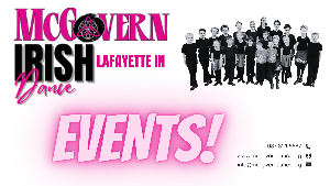 REEL IRISH DANCE CAMP & OPEN HOUSE LAFAYETTE IN Sept 8, 9, 10 Schedule: Friday - 6:00 - 6:45 Saturday Jump’n Jig 10:00 - 10:45 (Class & Open House) McGovern Irish Dance 11:15 - 12:00 Sunday 1:00 - 1:45 All of our dancers from all of our studios are welcome to come to this event. This is also the kick off to the start of the Lafayette IN Studio 2023/24 Season. All current Lafayette dancers and parents that have not yet registered should come to the Open House on Saturday...